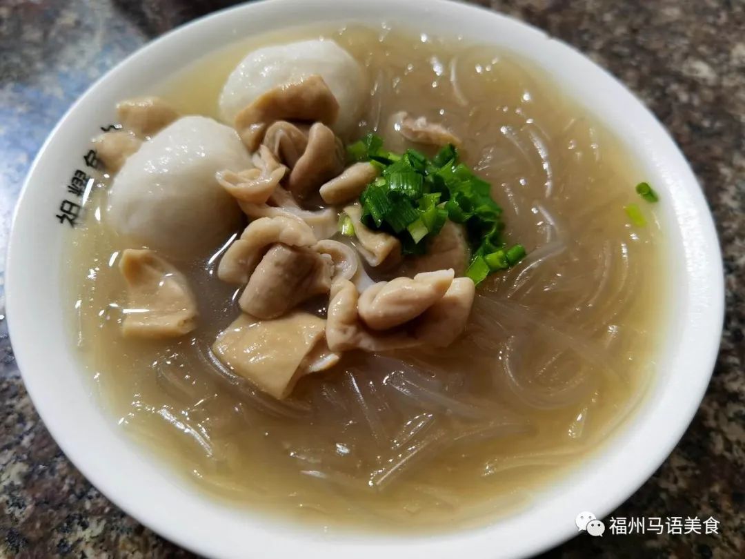 大肠鱼丸粉扣一起上,鱼丸我觉得太软,鱼味稍显不足,如果拿连江或长乐鱼丸来比,或者就拿福州的福信可信可飞等鱼丸来比,都觉得这家不够精彩,内馅也少,汁水不多,有点像超市卖的机器化大批量鱼丸,或许是我吃不来当地鱼丸。