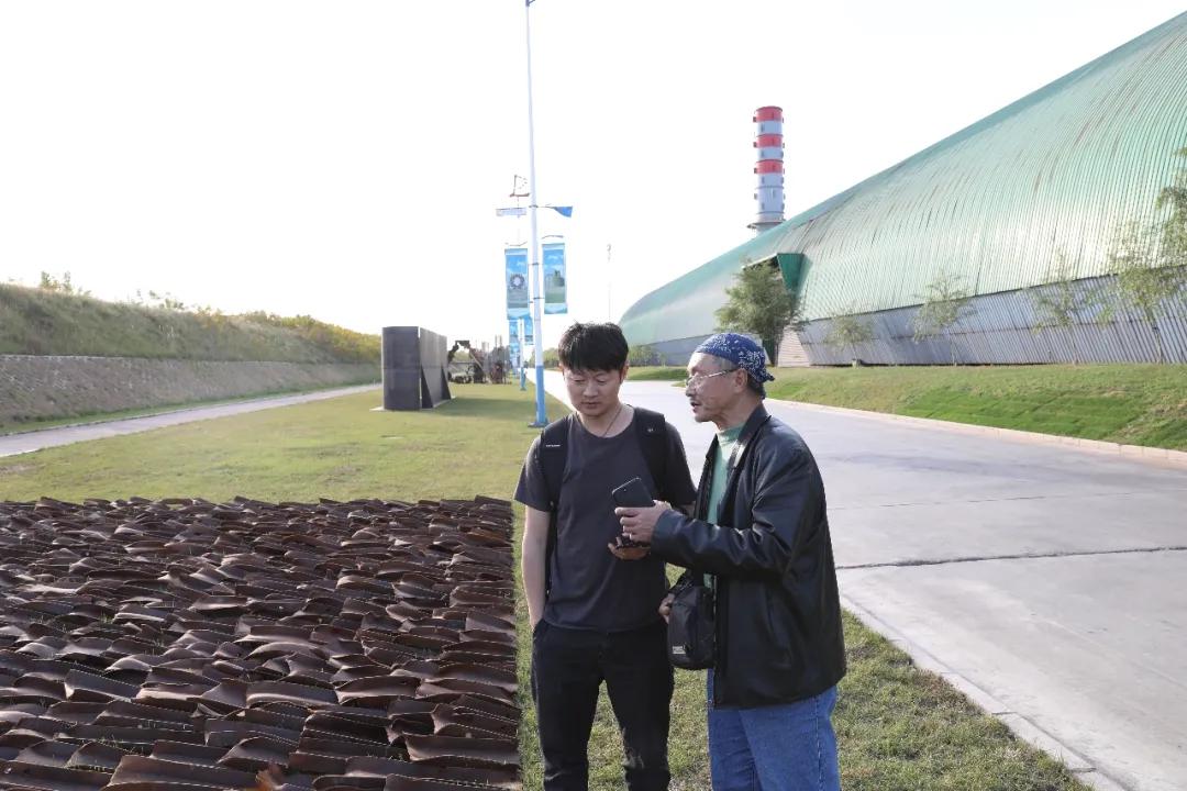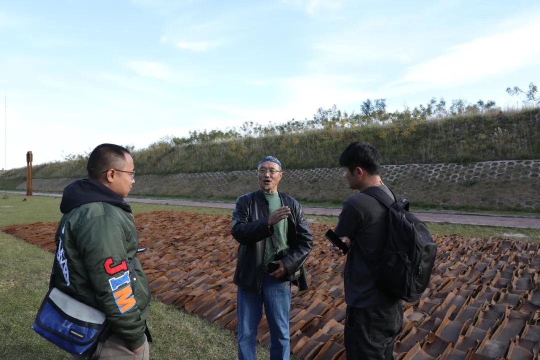吕老师与各位艺术家共同参观了雕塑作品后,对园内作品进行了逐一赏析,从作品的风格到其背后观念进行了全面的解读。随后,吕老师参观了料厂,在参观过程中,青年艺术家们与吕老师探讨了创作选材过程中遇到的问题,并就技术与艺术的边界问题展开讨论。