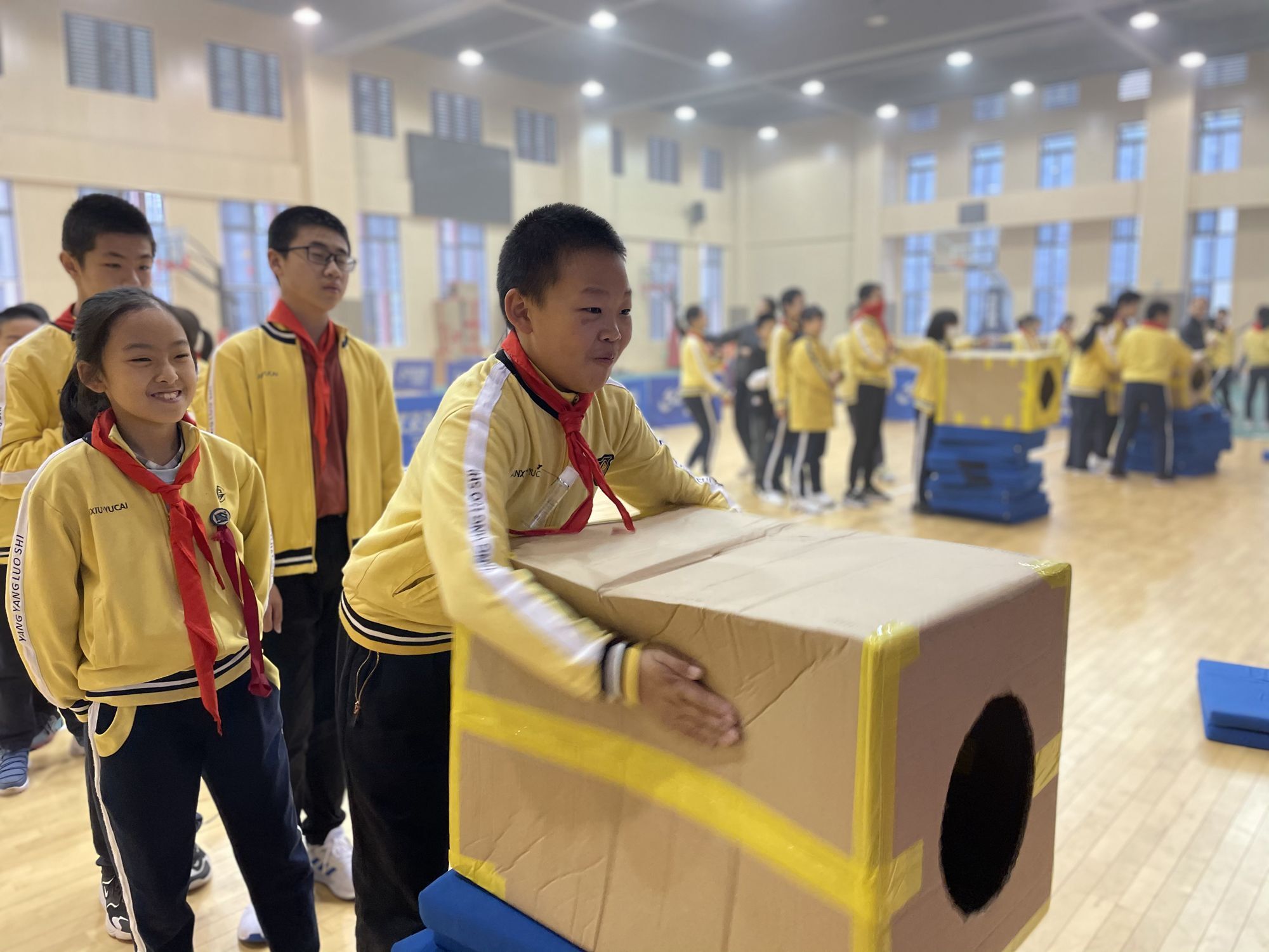 三四年级进行的是《玩转空气大炮》,用大纸板盒做的“空气大炮”来“吹”灭距离2米远的蜡烛……
