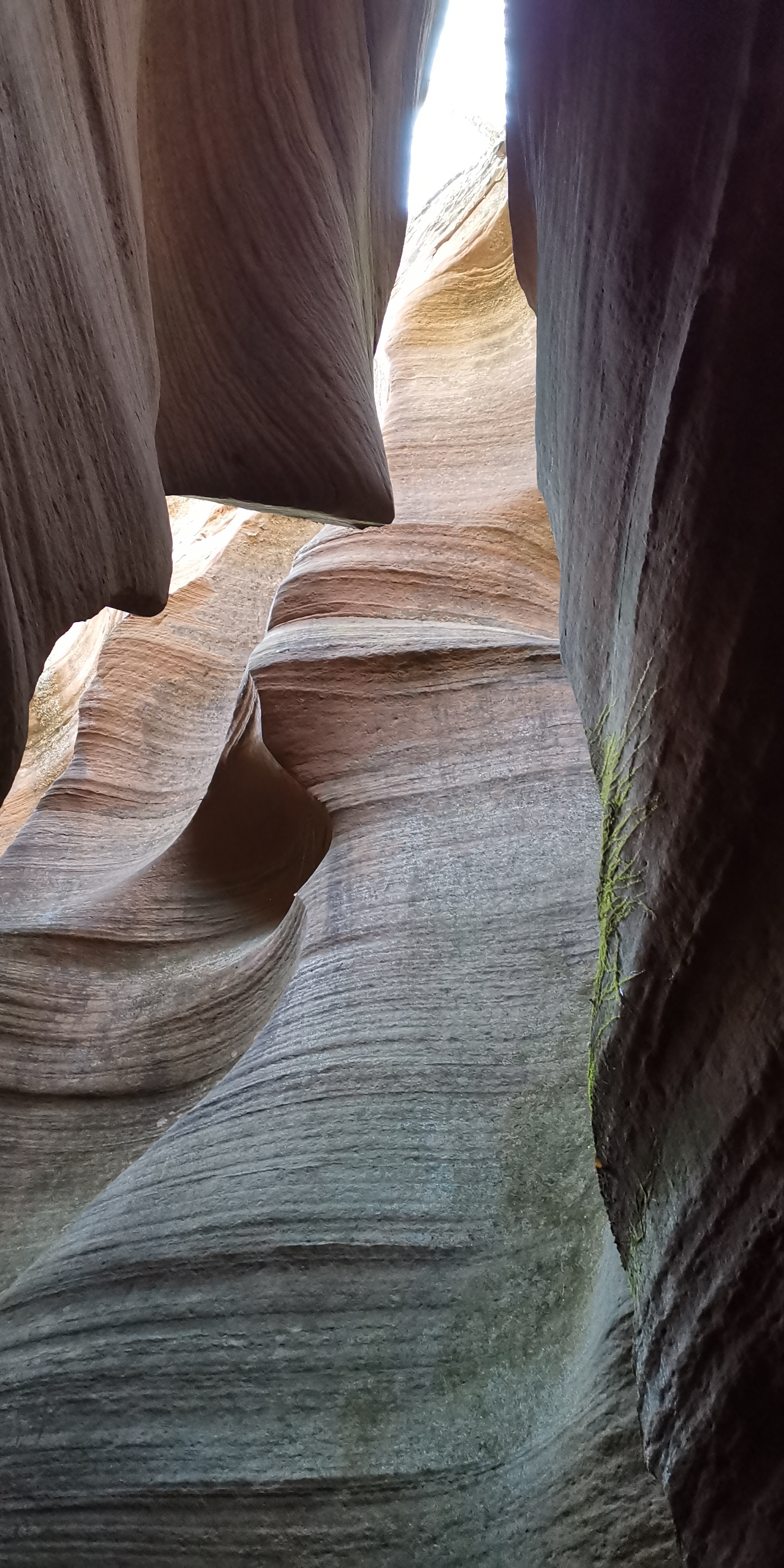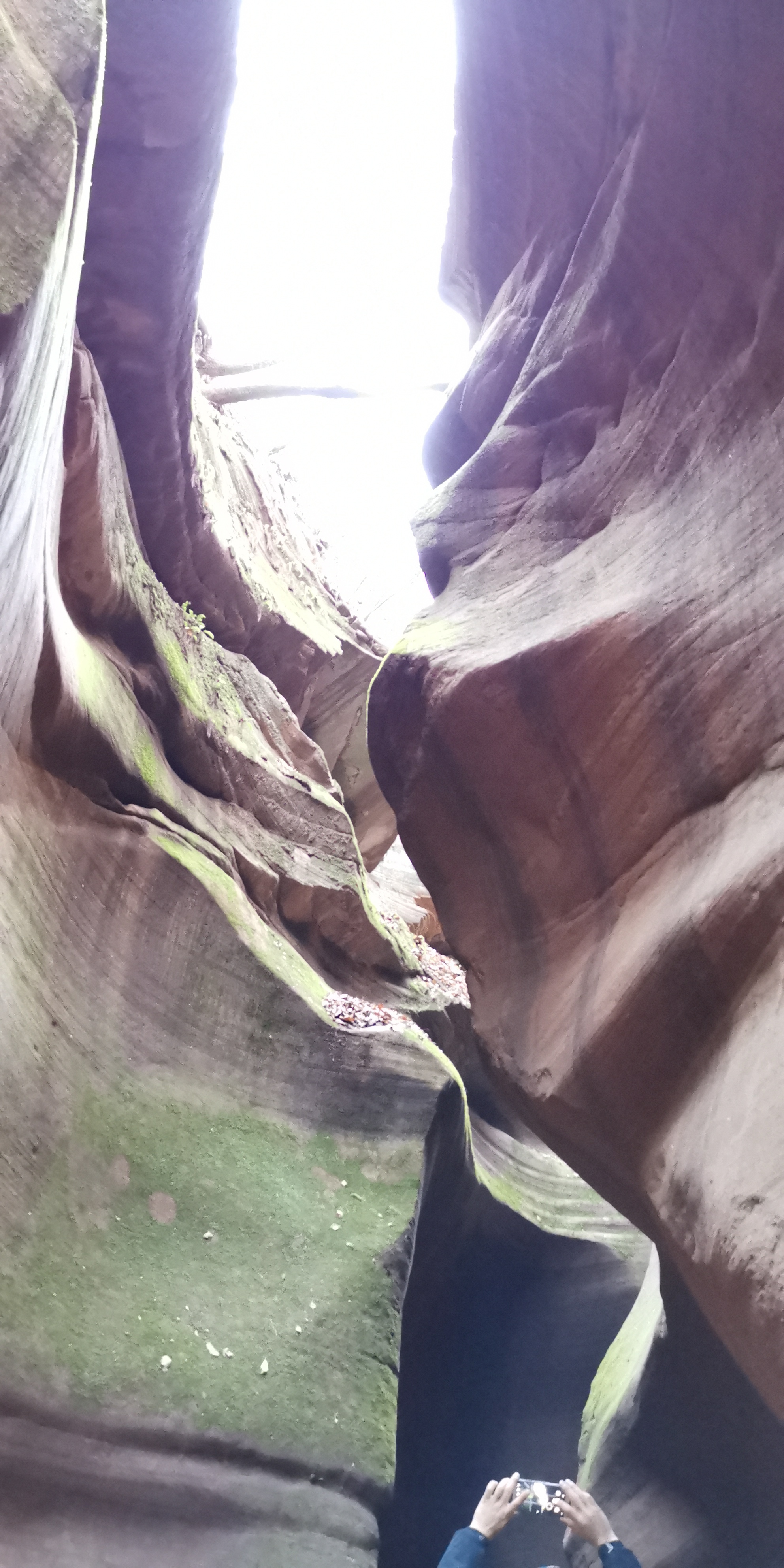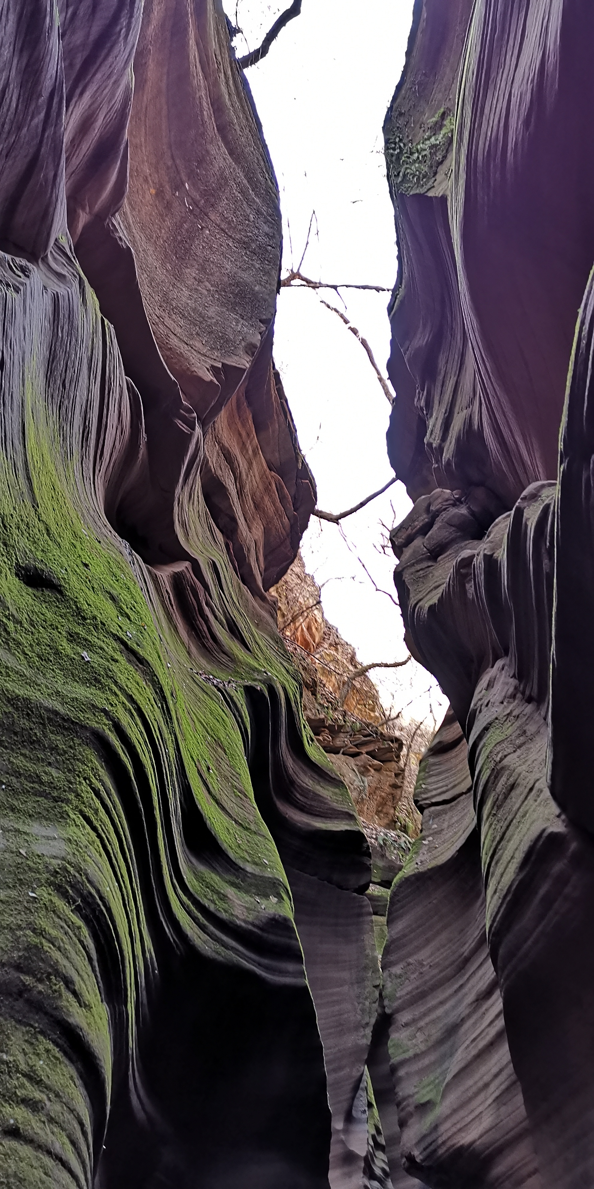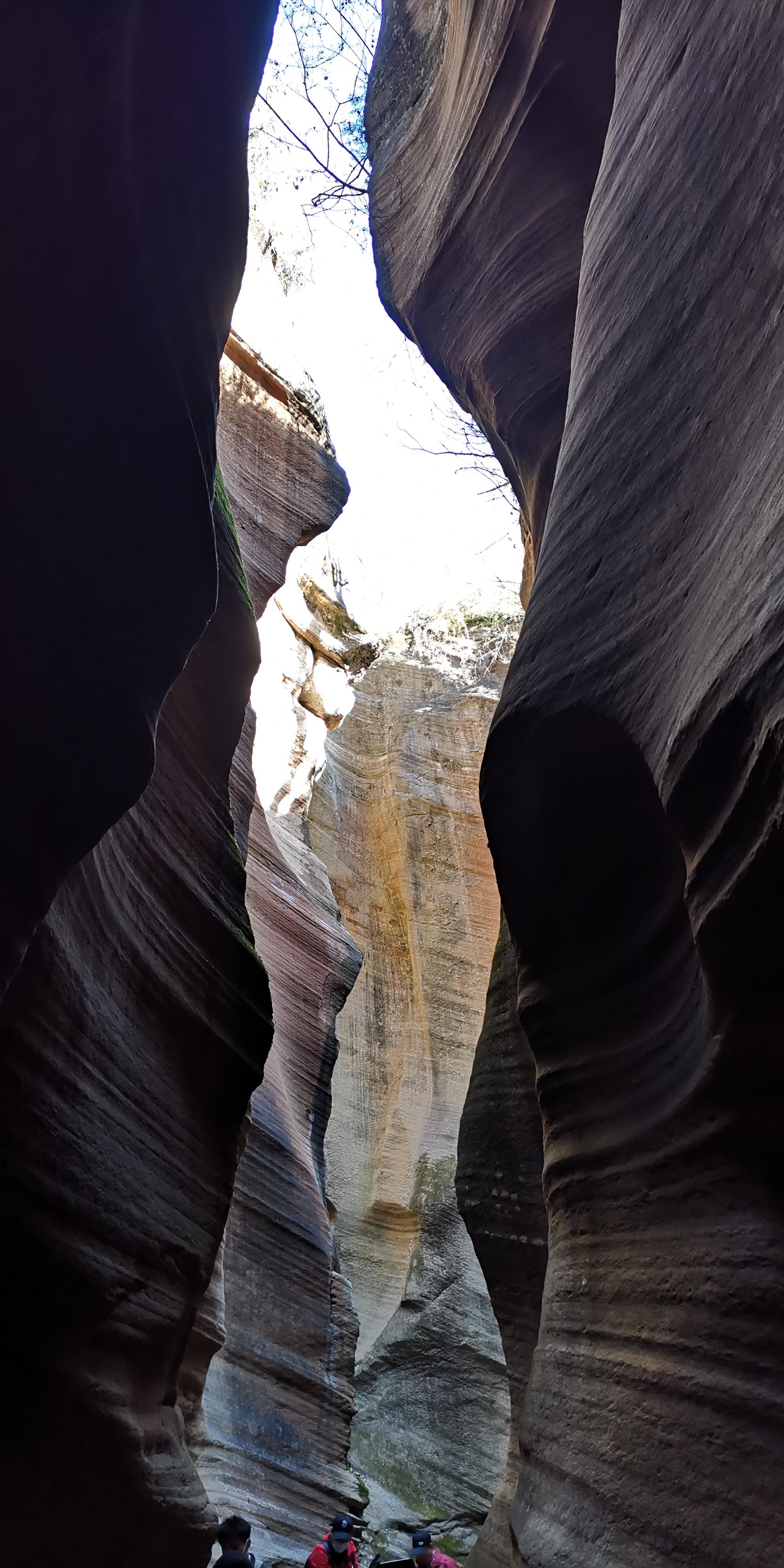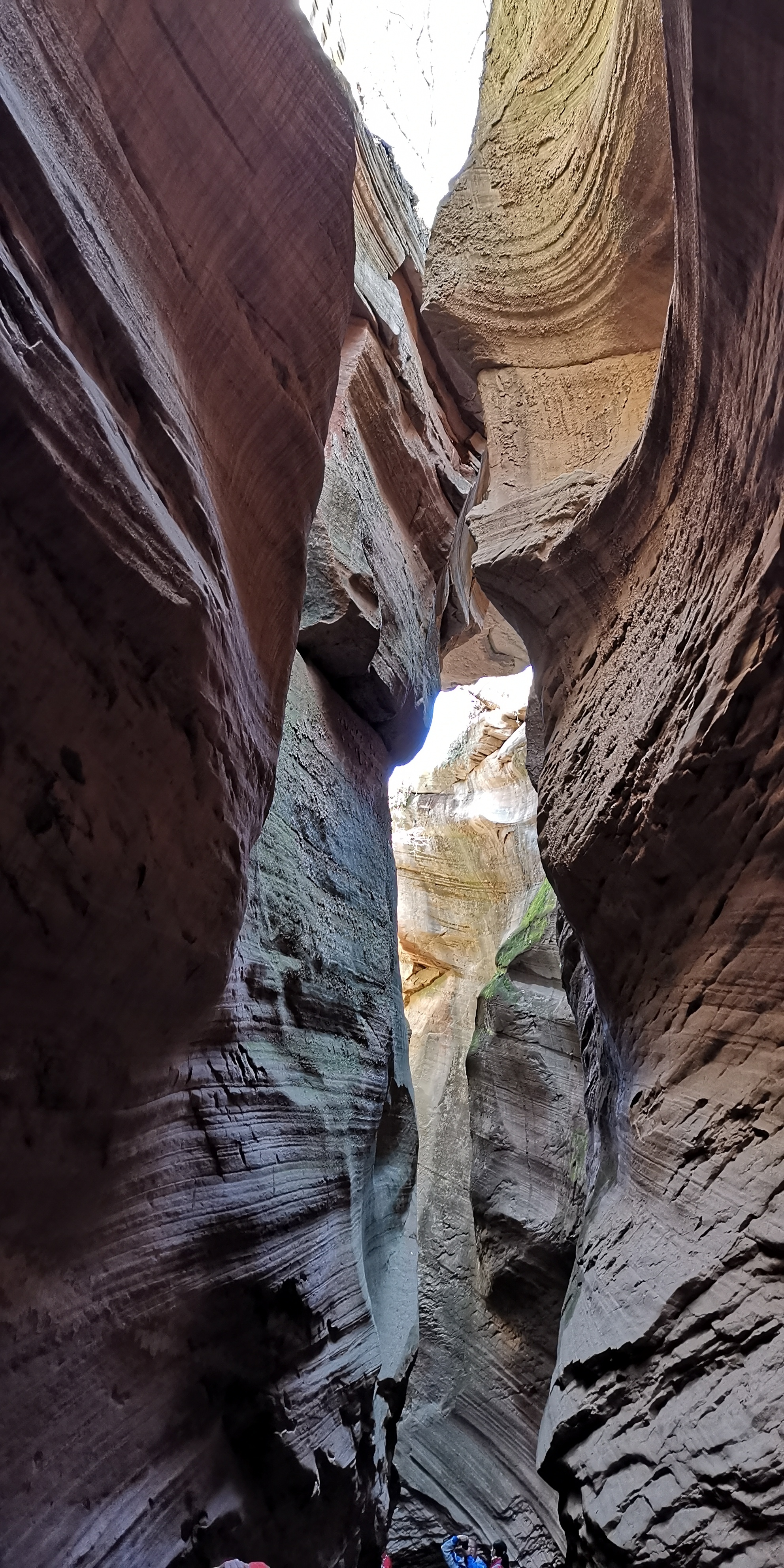 有人说,美国亚利桑那州羚羊大峡谷和这里有相似之处。专家称之为“黄土高原自然地缝奇观”,属于陕北独一无二地质美景。狭缝型峡谷内怪壁峭立,若干沟壑交错纵横。这里是丹霞面积巨大,发育典型、类型齐全、形态丰富、风景奇特的大峡谷。约十几米深不规则的地缝里,最窄处需侧身收腹才可通过,宽处也就一米左右。常年遭风雨浸淫剥蚀,峡壁凹凸起伏不定,线条优美流畅,仿佛袒露着大地肌肉的纹理,又如层层波浪在地表以下一波波地涌过。