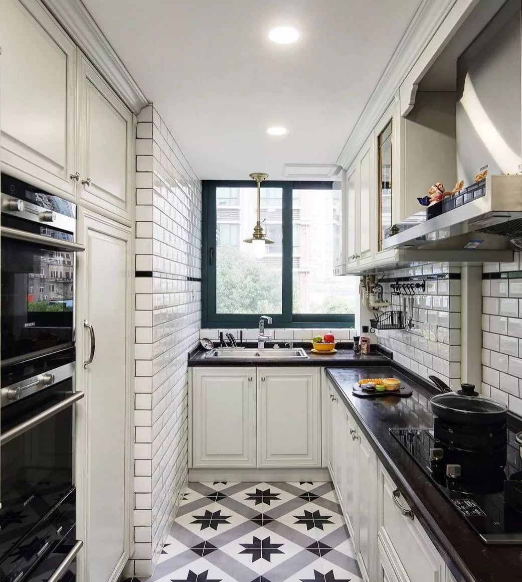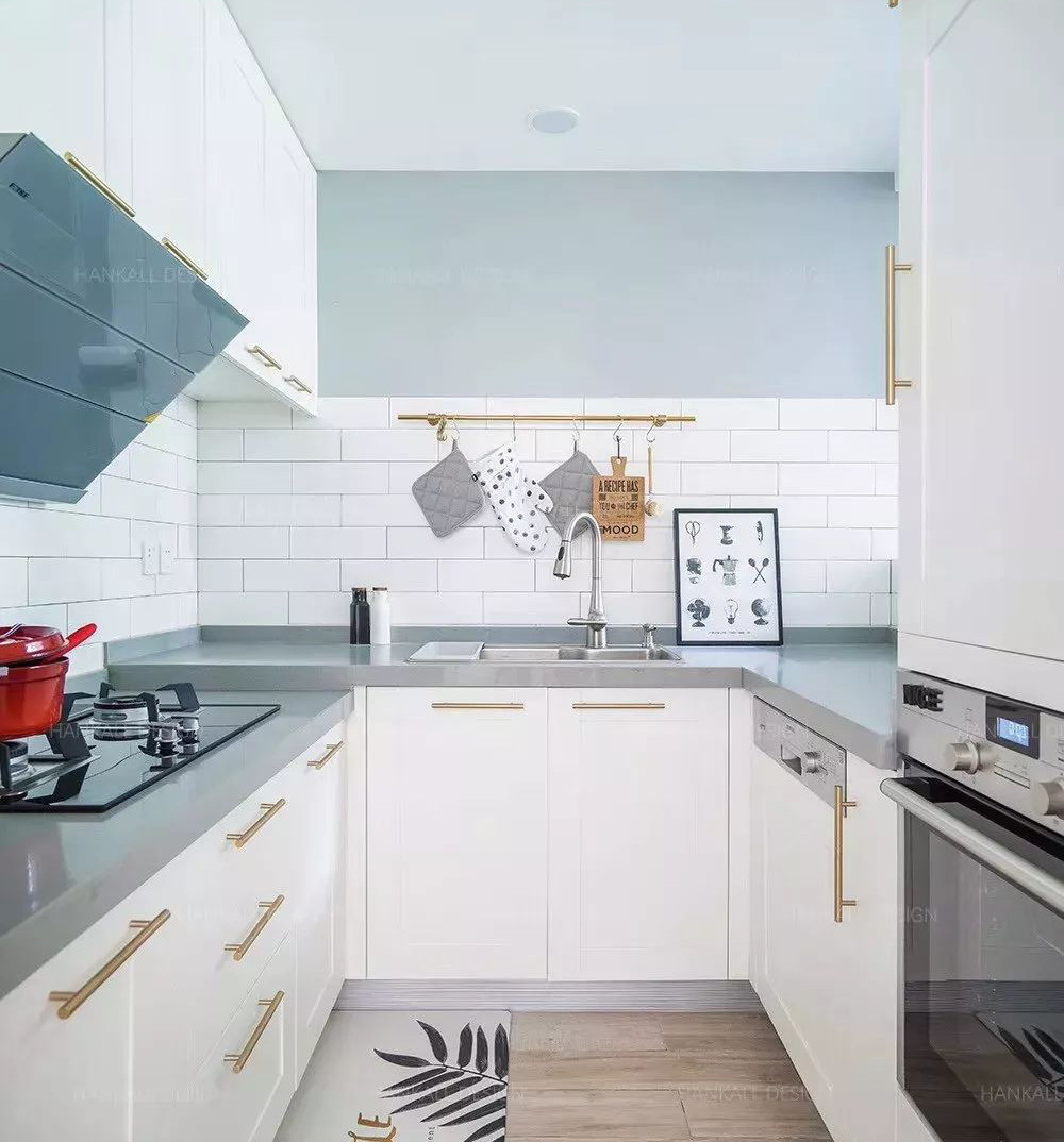 如果是回字型的厨房,灶台、水槽和操作台可能在三边,只要遵循“水高灶低”的大原则即可设计高低台,建议将水槽和操作台的高度统一。