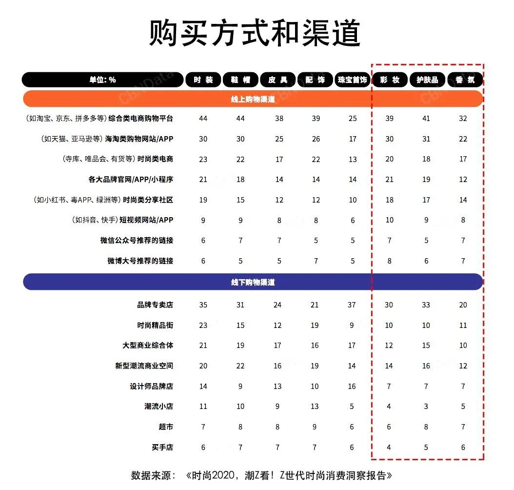 Z世代美妆消费的购买方式和渠道