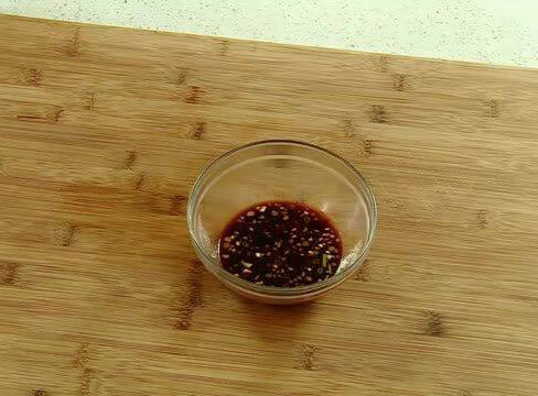 6、取一只小碗调料,加入一勺醋、一勺生抽、一勺糖、半勺盐,1勺料酒,并把剁碎的豆瓣酱和葱姜放入搅拌均匀;