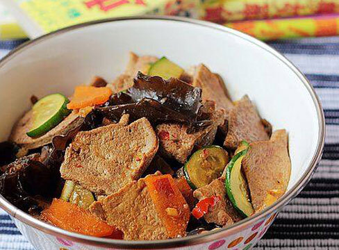 主料:猪肝、胡萝卜、木耳、黄瓜
