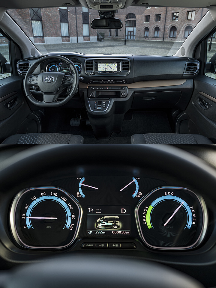 Proace Verso Electric 延续了既有的中控台内装设计基础,但因应纯电动力具备全新的仪表显示设定,驾驶亦可透过中央显示幕了解电池电量等相关资讯。