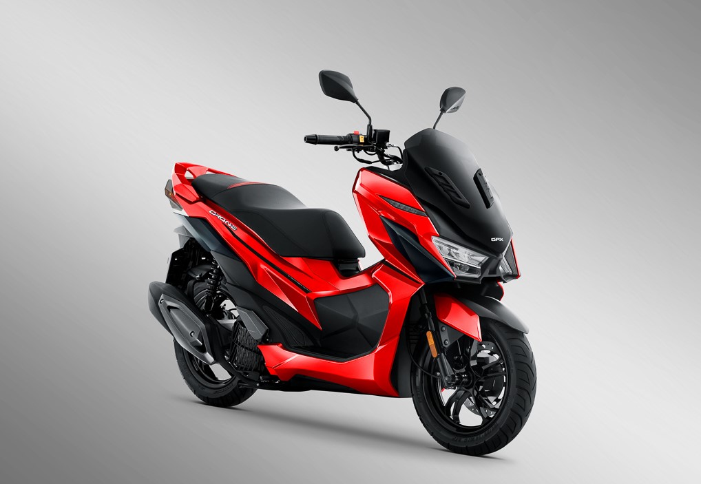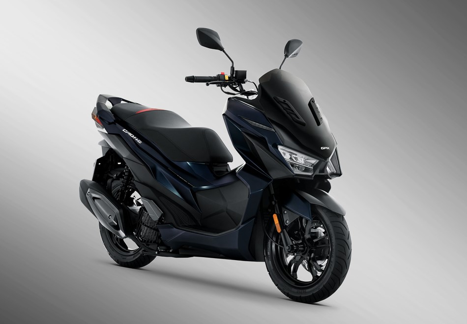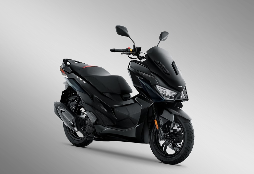 SYM的同款车型Jet X也将很快发售,GPX Drone配备了SYM的150cc两气门单缸发动机,亮点配置包括完整的LED照明系统,LCD电子屏幕,CBS前后盘式制动器,Smartkey无钥匙启动系统等,GPX Drone是在GPX自己的泰国工厂生产。