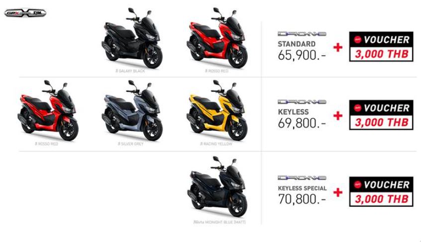 SYM与泰国GPX合作的首款车型Drone正式在泰国发布,起售价65,900泰铢(约14300元人民币),GPX Drone Keyless版的价格为69,800泰铢(约15140元人民币), GPX Drone特别版的价格为70,800泰铢(约15360元人民币)。