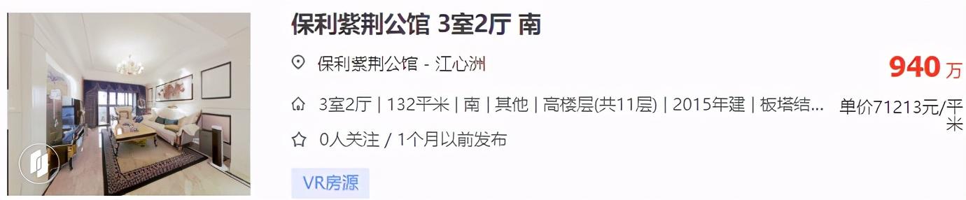 江心洲售价最高二的二手房为江岛华庭,成交价均在6万/㎡左右。银城长岛观澜最新成交价已达5.97万/㎡,直逼6万/㎡。保利紫荆公馆二手房价已达5.7万/㎡。