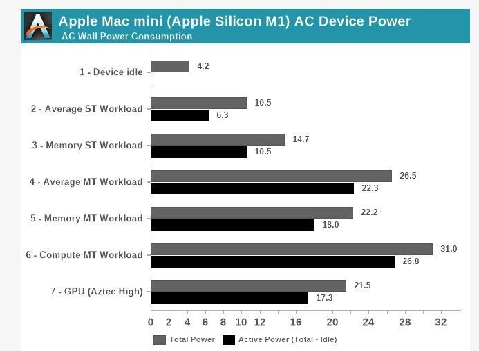 除了性能方面的表现,更低的功耗应该也是苹果 M1 芯片的一大亮点。最近外媒 Anandtech 就针对这个部分进行了一系列测试,并且在昨天放出了相关数据,可以看出 M1 整体来说还是很节能的。
