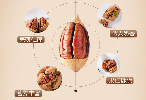 挑选碧根果要看碧根果是不是饱满,还有碧根果的颜色是不是均匀,要选购尺寸大小都差不多的。