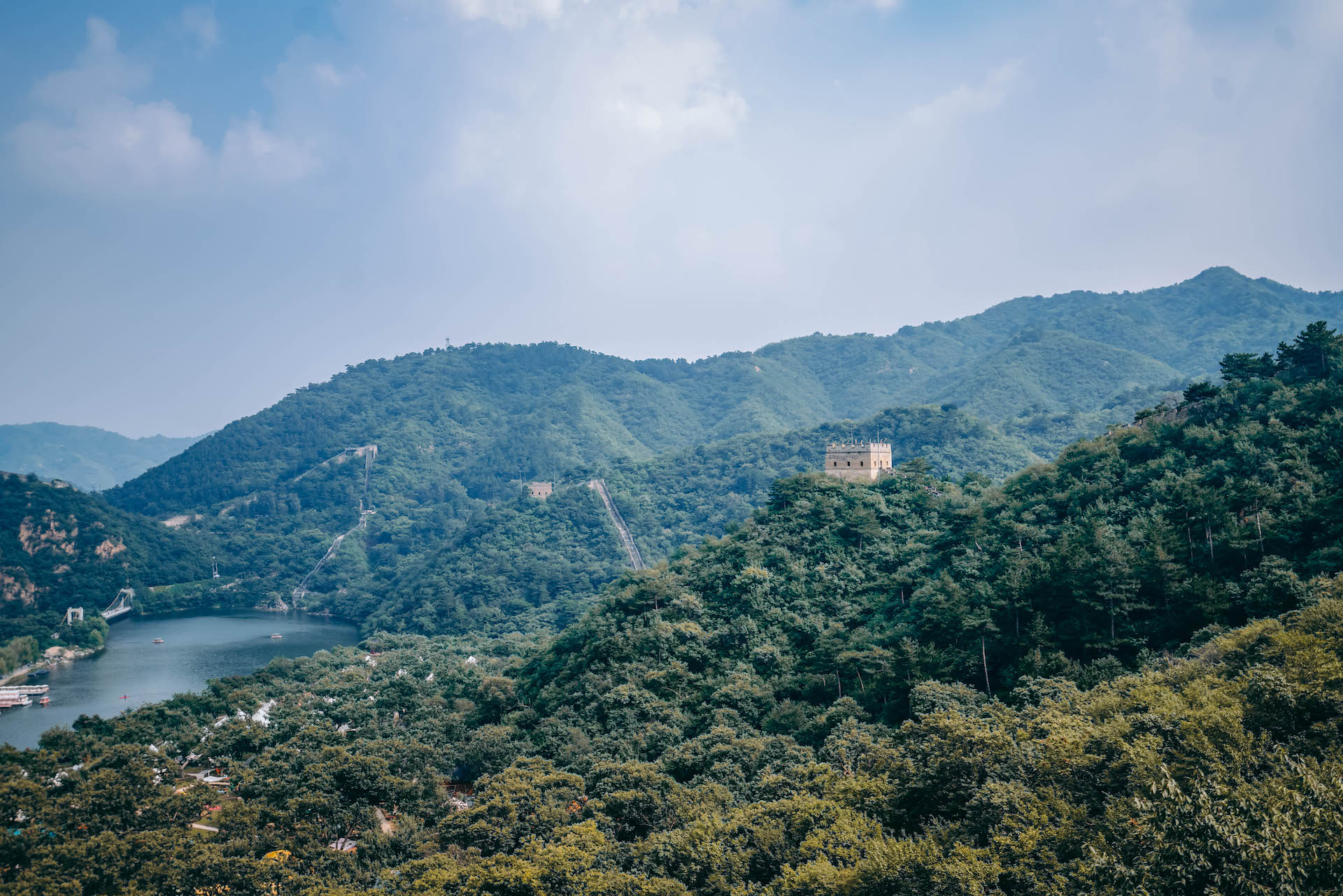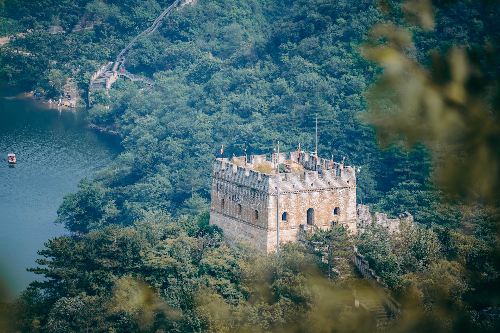 这般长城入水的胜景,倒也是颇为吸引游客。坐着磁滑道缆车来到山顶的烽火台,顿时一览众山下。四周是苍翠的山岭,水质非常好。从山顶的长城俯瞰灏明湖中的小岛,一派湖光山色,风景怡人