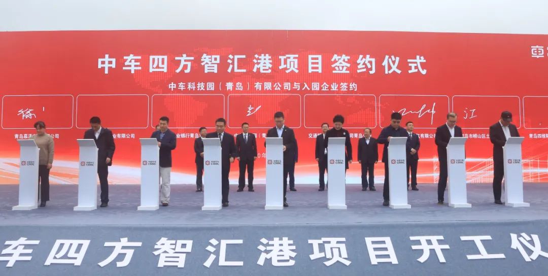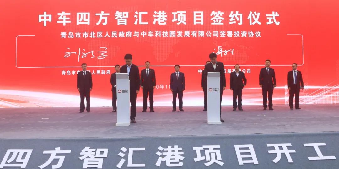 启动仪式现场,青岛市市北区人民政府与中车科技园发展有限公司签署了投资实施协议;中车科技园(青岛)有限公司与中车青岛四方车辆研究所有限公司签署了合作协议,与华为签署智慧园区合作框架协议,与拟入驻园区企业签署招商引资合作框架协议。