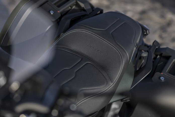 特殊设计的座椅,可在旅行时为骑手和乘客提供更好的乘坐舒适感。座椅采用对比色缝线的双材料蒙皮,以及不同的泡沫密度区域,并采用对比缝线和压花“ Tracer”徽标,比以前的座椅更具高档设计。