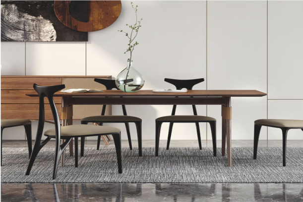 实木与皮革混搭碰撞,整体造型简洁大气,线条利落流畅,视觉轻巧。