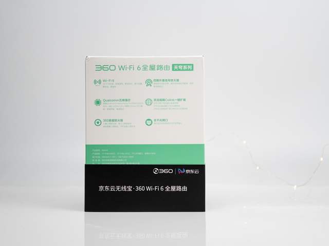 包装方面,白底加上浅绿图案,简洁清爽,360和京东联合出品,自然有两者的LOGO印于其上。