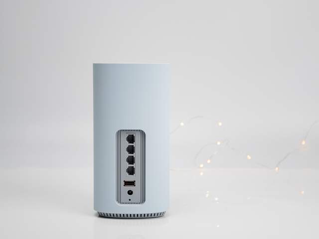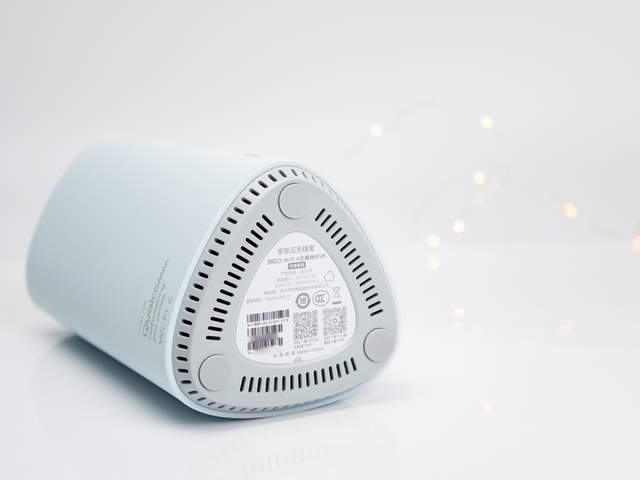 路由器的外观设计,往往被很多厂家忽视,其实路由器也是家居环境很重要的一部分,一个傻大黑粗笨的路由器,只会让人想把它藏在某个不起眼的角落,并且用东西遮挡住,而这样往往会影响路由器的信号和散热,造成手机等卡顿慢、易掉线。京东云无线宝·360WiFi6全屋路由显然考虑到了,外观设计简洁清新,圆润的三棱柱状机身,颜色为微微泛青的白,正面仅有一个细细的指示灯,放在任何家居环境中都不会显得突兀。