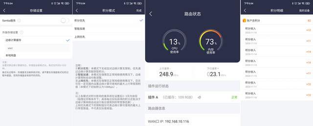 进入存储设置,可以开启或关闭Samba服务,建议关闭。外接存储设置里,把边缘计算缓存从本地网盘切换到外置U盘或SSD,积分模式里,切换到积分优先,这样就设置完毕,可以躺赚积分了。在路由状态里可以看一下已缓存的大小,在线时长等,便于掌握路由是否出现问题,而在积分明细则可以看到每天的积分收入。初期一般是10个积分,慢慢就会增加,偶有起落,不必担心,细水长流,积少成多,总会有把路由器和U盘的花费赚回来的一天。