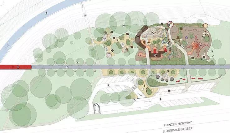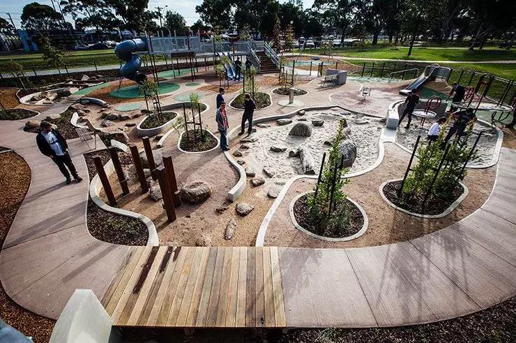 澳大利亚墨尔本的丹德农公园游乐区设计为丹德农公园注入了新鲜的血液。沿着王子高速公路,可以看到这个标志性的游乐区域,它与丹德农地区的历史古迹遥相呼应。