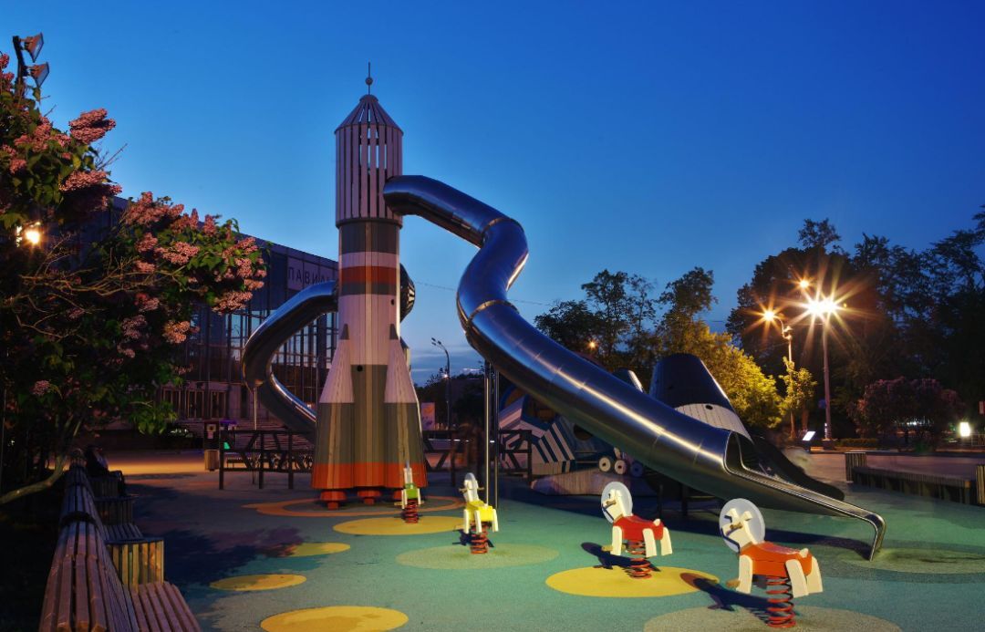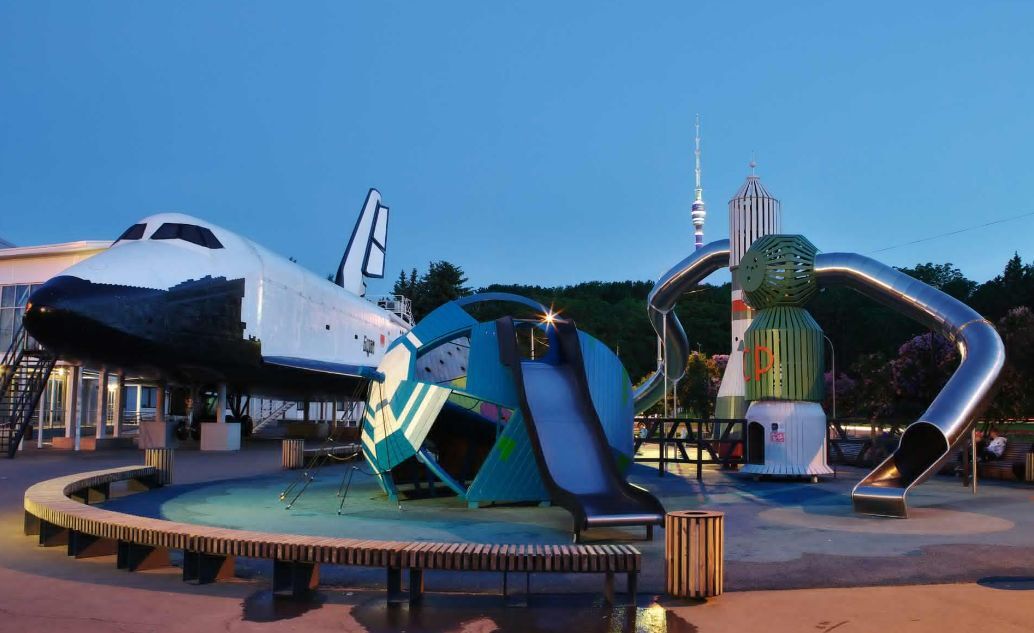 游乐场上最大的元素是R-7 SOYUZ火箭,这是1960年代设计的苏联运载火箭,至今仍在服役。孩子们可以先在博物馆里了解火箭,然后在游乐场中体验在火箭上的攀爬。