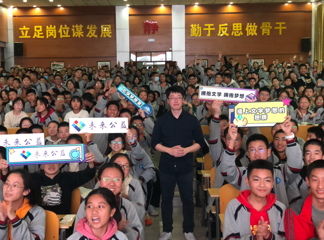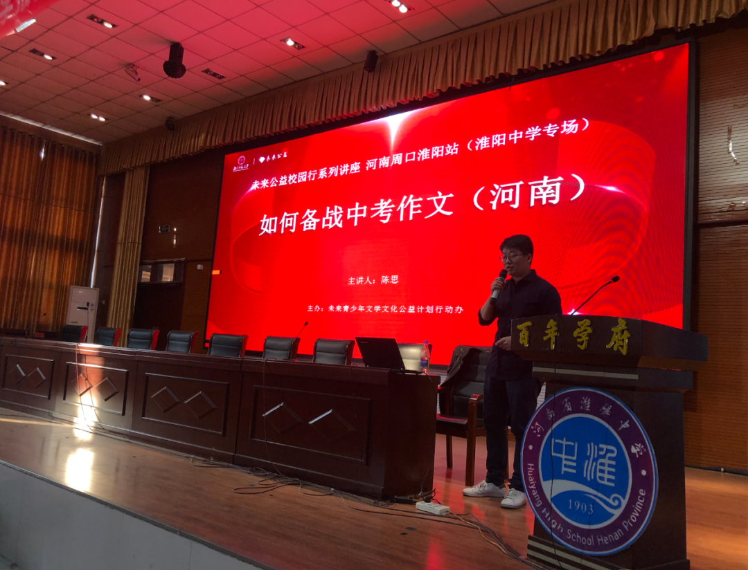 因此,他们更需要一些外界的力量,帮助他们提升写作能力,拓展文学视野。带着这样的使命,11月9日,未来公益走进河南省周口市淮阳区,分别为新华小学、淮阳中学、陈州高中数千名师生展开四场大型公益讲座。