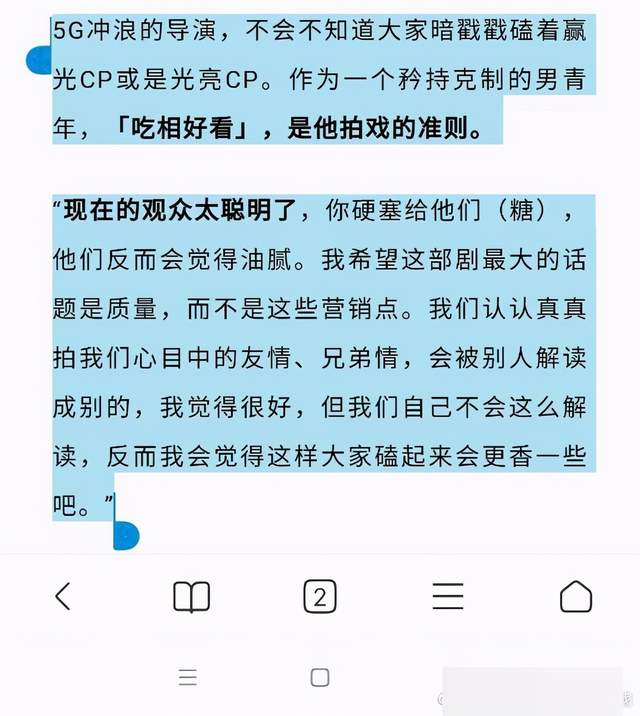 同时,导演还表示,如今的观众其实很聪明,硬拍出cp感观众是可以感受得到的,观众反会觉得油腻接受不了,这种自然而然的相处,让观众自己去get电视剧中的cp感,反而能将cp感发挥到最大效果。