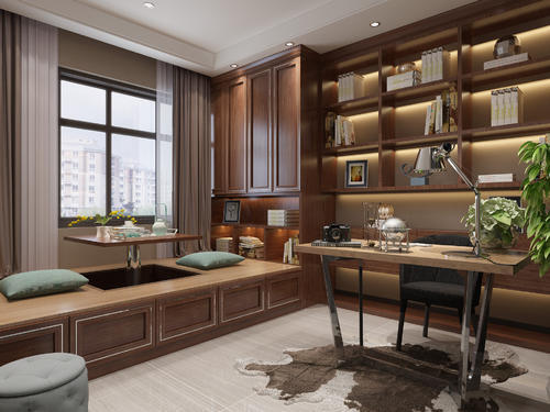 随着社会的进步,新中式书房的设计也会有所改变。不同的人对新中式的理解也不尽相同,对书房的设计也各有各的想法,无论你是想简单的放个书柜摆满书,还是要有古时“书斋”的韵味,也不论面积多大,空间多少,心境自在,甚得喜爱。