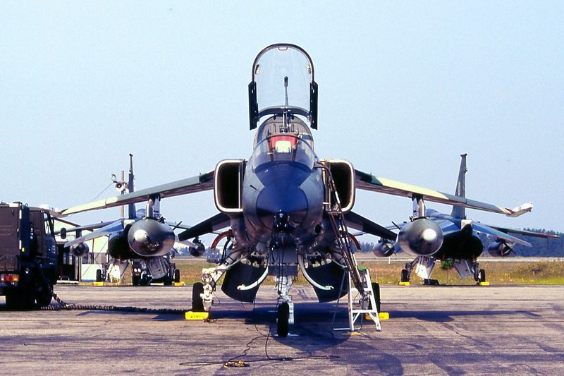 F-1战斗机,主起落架后的减速板,垂尾后上方的雷达告警装置清晰可见