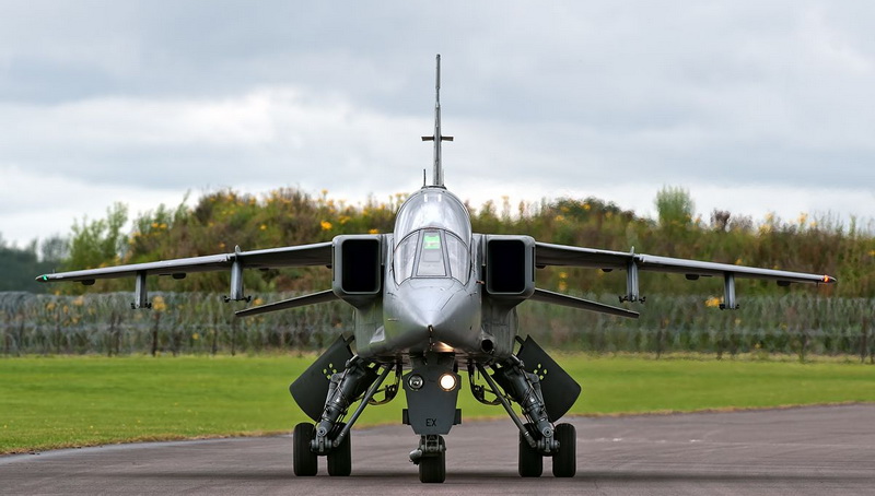 再来两者的正面照比较一下,美洲虎机体显得更方正粗短一点,因为要求野战机场起降,所以美洲虎的起落架都是双轮。