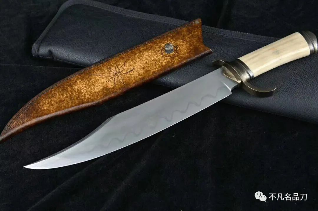 他的每一把刀都是独特的设计,护手古铜的制作,手柄独特材料处理,1050手工锻造钢材,覆土烧刃波浪线的处理,都是独一无二,绝无仅有,全部是尽善尽美,无可挑剔。由于对制作的挑剔,最求极端的完美,这使得他的刀一刀难求,每年制作的作品数量稀少,订单长到两年以上。