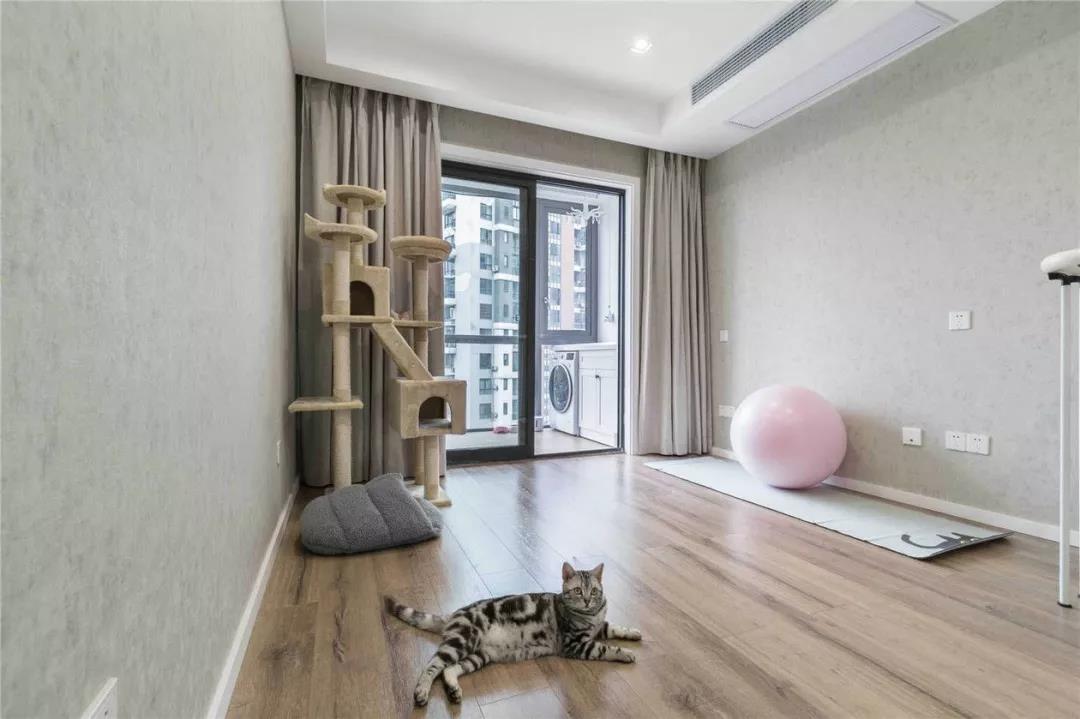 这间是预设的儿童房,为以后宝宝准备的,选择还没家具,等以后有了宝宝再添加。儿童房外面摆放了洗衣机、洗手台和吊柜晾衣杆。