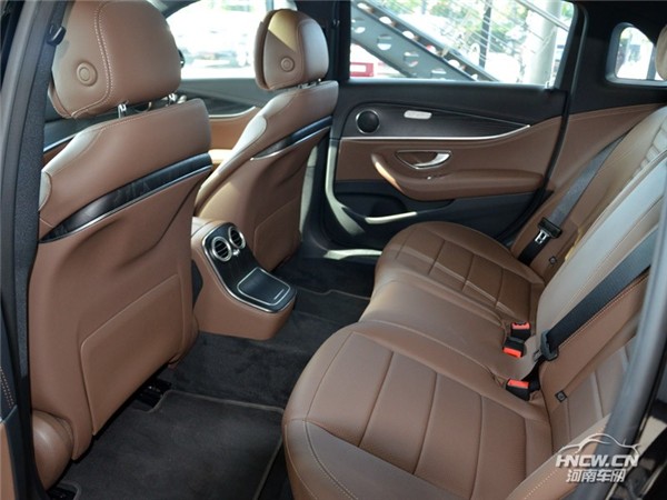 车身尺寸方面,新款奔驰E级的长宽高分别为5078/1860/1490mm,轴距为3079mm,仅车身长度略有增加。作为一台中大型车,新车的后排空间自然相当宽裕,身高184cm的体验者调整好前排座椅合适坐姿后,坐进后排,头部空间剩余3指,而腿部空间则超过了2拳。再加上E级的后排头枕十分柔软,两侧座椅坐垫长度对于大腿的承托性也相当到位,因此乘坐舒适性较高。略有遗憾的是,新车后排地台依然存在明显隆起,中间座椅的坐垫长度也不尽人意,因此对于中间乘客并不太友好。不过话说回来,作为一台豪华中大型车,后排满载的情况应该也不会太常发生。