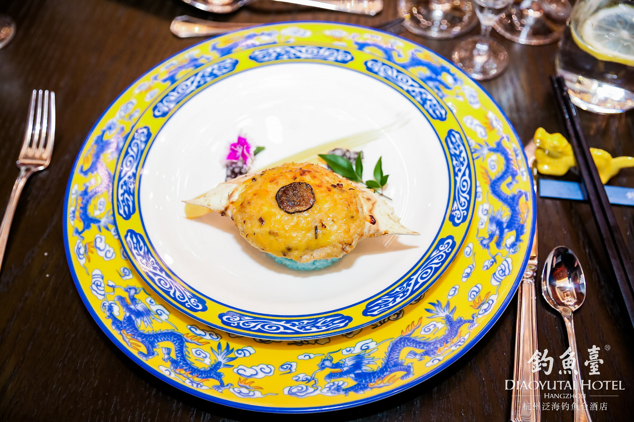 澳门中西荟萃,海纳百川,成就了“璀璨明珠”的澳门美食。来自澳门美高梅金殿堂中餐厅总厨徐伟豪师傅奉上中西文化交融的菜肴:松露蟹肉焗蟹盖。徐师傅在这道经典显赫菜式上融入了自己的创意,改良以西式忌廉(奶油)酱汁调味,口感鲜甜浓厚。每一口都充满了新鲜蟹肉的鲜甜,而幽香的松露菌让味道更具层次。