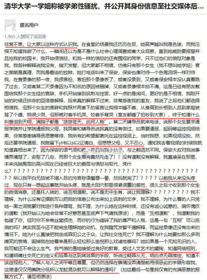 学弟只是一个18岁的孩子,帖子最后扯一堆疑罪从无、无罪推定,网络规则、社死定义什么的,顺带贬低了一波清华美院,这如何跟老实人的人设匹配?