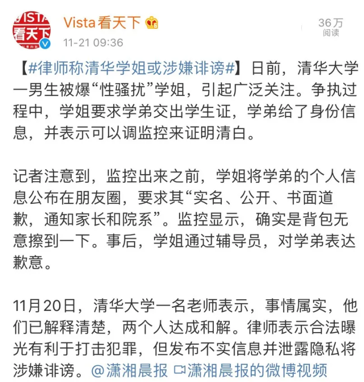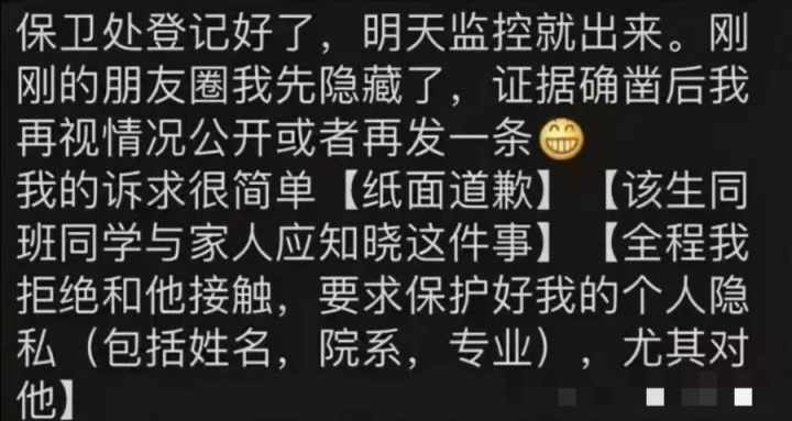 这篇爽文你看着是很带劲,但仔细一推敲就知道不靠谱,校方已经做了澄清,学弟从来没在网上发过贴,他只想尽快翻篇,安心学习。