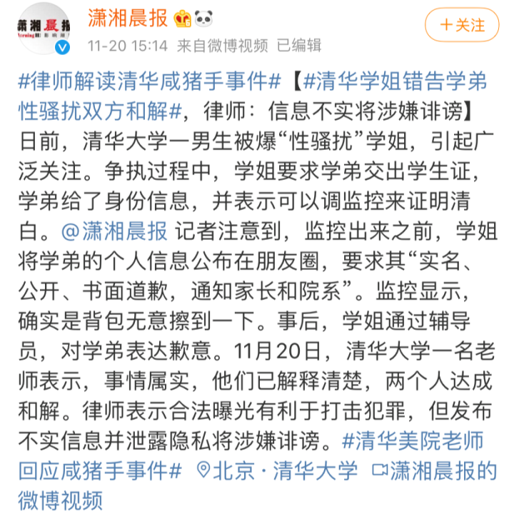而对于学弟来讲,大事化小,小事化了是最优解,煽风点火的都是看热闹不嫌事大的吃瓜群众,学弟还有繁重的学业要完成,哪有精力起诉?