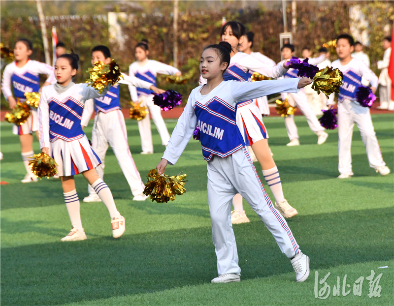 2020年11月19日,在河北省邯郸市永年区洺州中学,学生们正在进行花球啦啦操项目展示。