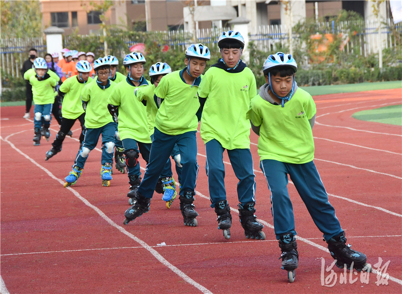 2020年11月19日,在河北省邯郸市永年区洺州中学,学生们正在进行轮滑项目展示。