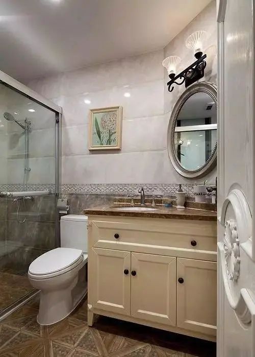 ▲圆形的浴室镜,给空间注入一丝灵动与活泼