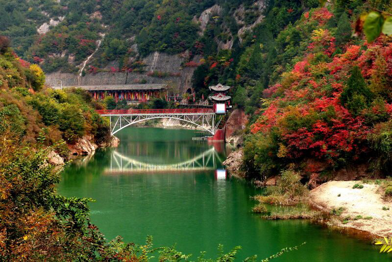 灵官峡秋季红叶观赏长达一月有余,第一个阶段看红叶五彩斑斓,第二个阶段看红叶层林尽染,第三个阶段看红叶万叶飘丹。