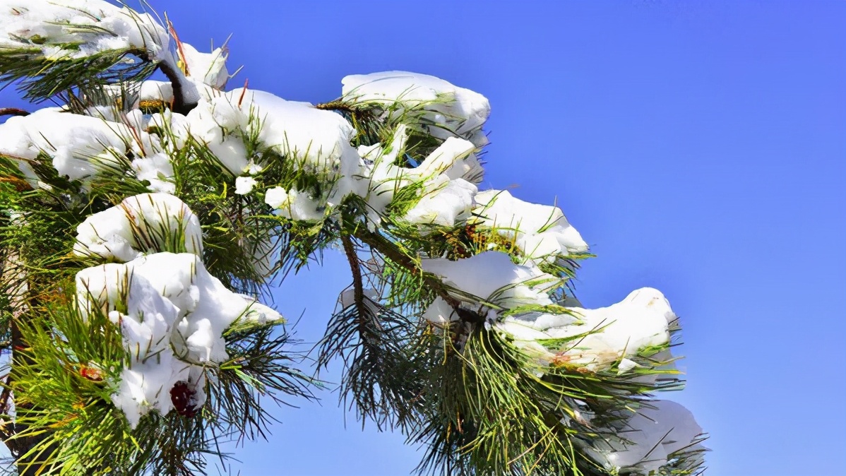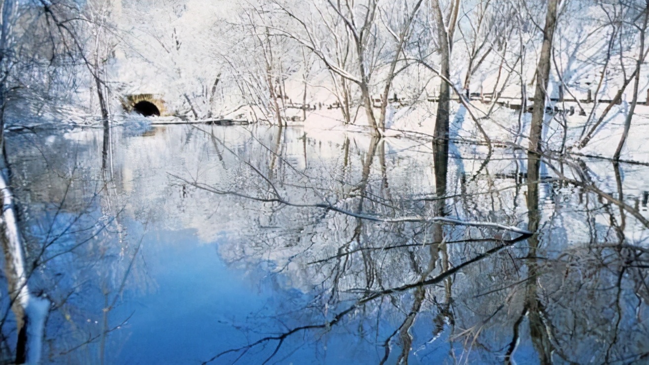 冬天青松傲霜,水落石出;