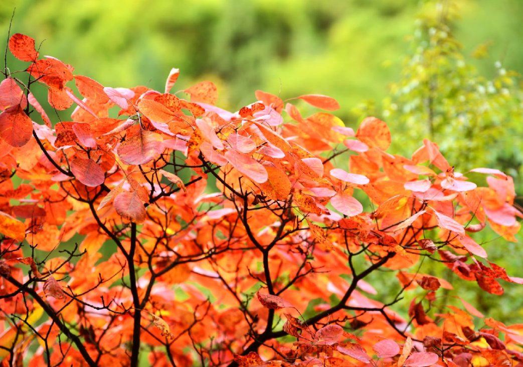 每个丛林颜色呈梯次变化,蓝、绿、黄、橙、红为主,是凤县境内周期最长,色彩最全的秋叶观赏地之一。