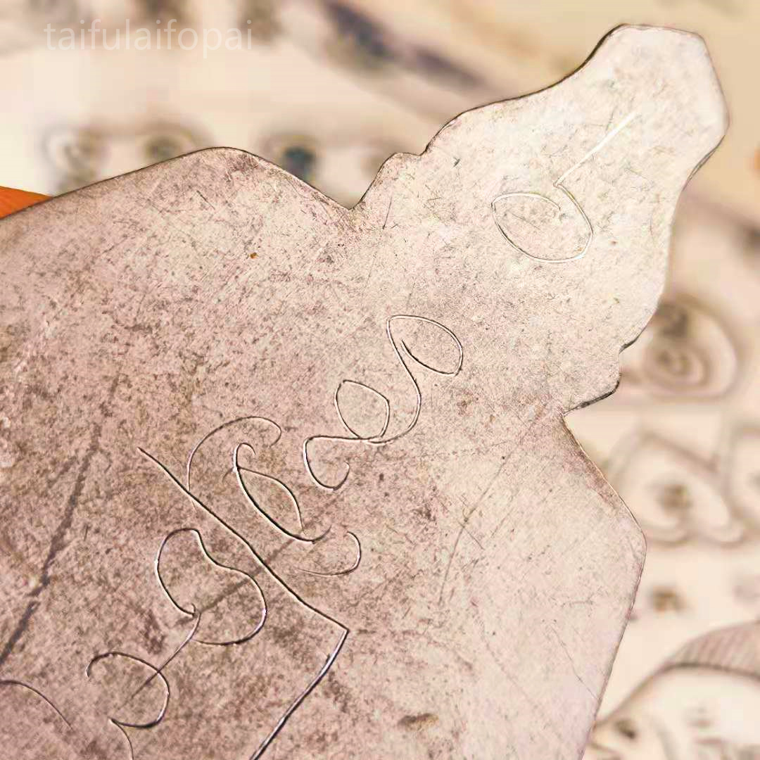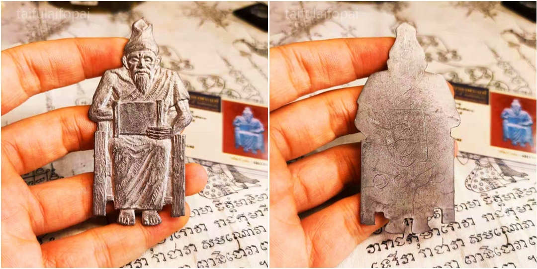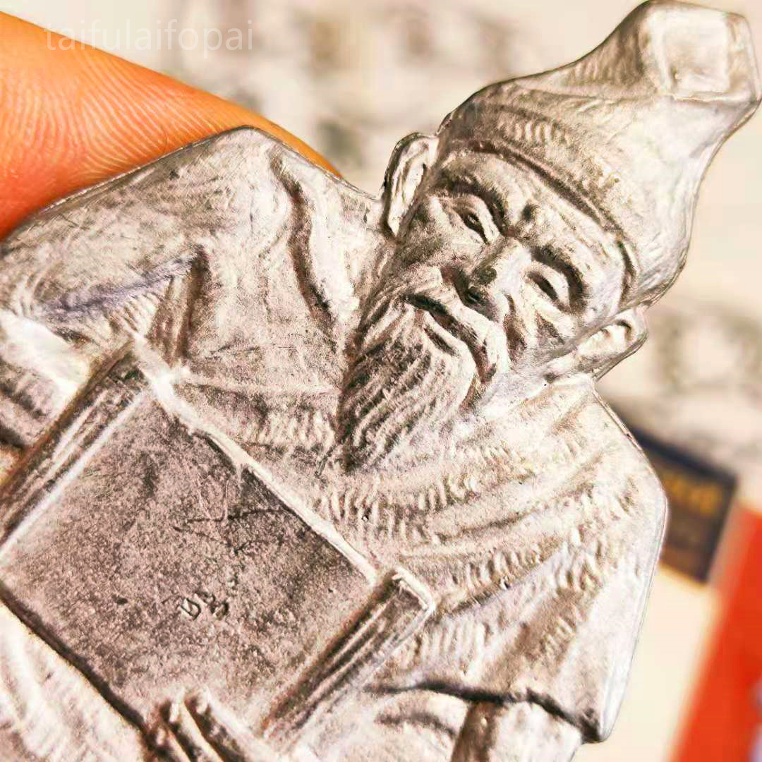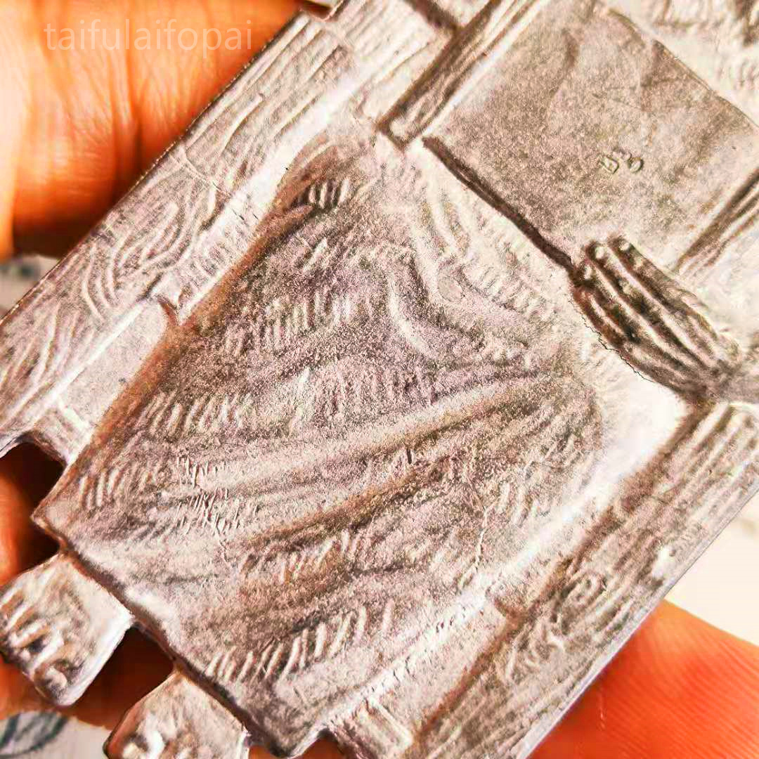 龙婆禅南祖师鲁士佛特别版本,材质为枪弹头熔铸掺入锡、铜、银等六种金属督造,鲁士佛所持天书篆印特徽记。法相为鲁士佛手持记录所有法术法门的圣书,传道受业姿态。背刻禅南师傅手刻符文, 经文由两部分组成:四面神心脏经文+鲁士祖师经文。本尊多用于佛堂佛像前供奉,或随身放于包中携行皆能如其所愿。本尊想必大家也是首次详图品鉴,希望大家喜欢。