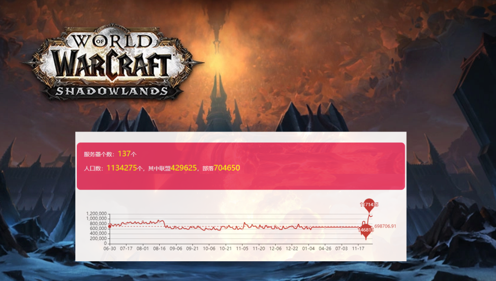本周以来,魔兽世界正式服的玩家人数都在不断的上升,而在周末这几天,正式服的日常活跃人数也再次达到了上百万,最多的时候甚至达到了117W。要知道在魔兽世界《军团再临》版本前夕的时候日常活跃人数仅有30-40W左右,而《争霸艾泽拉》版本前夕那段时间更是只有10-20W左右的日常活跃人数。上百万玩家坐等新版本的开放,足以见得9.0版本对玩家们的吸引力有多大了。