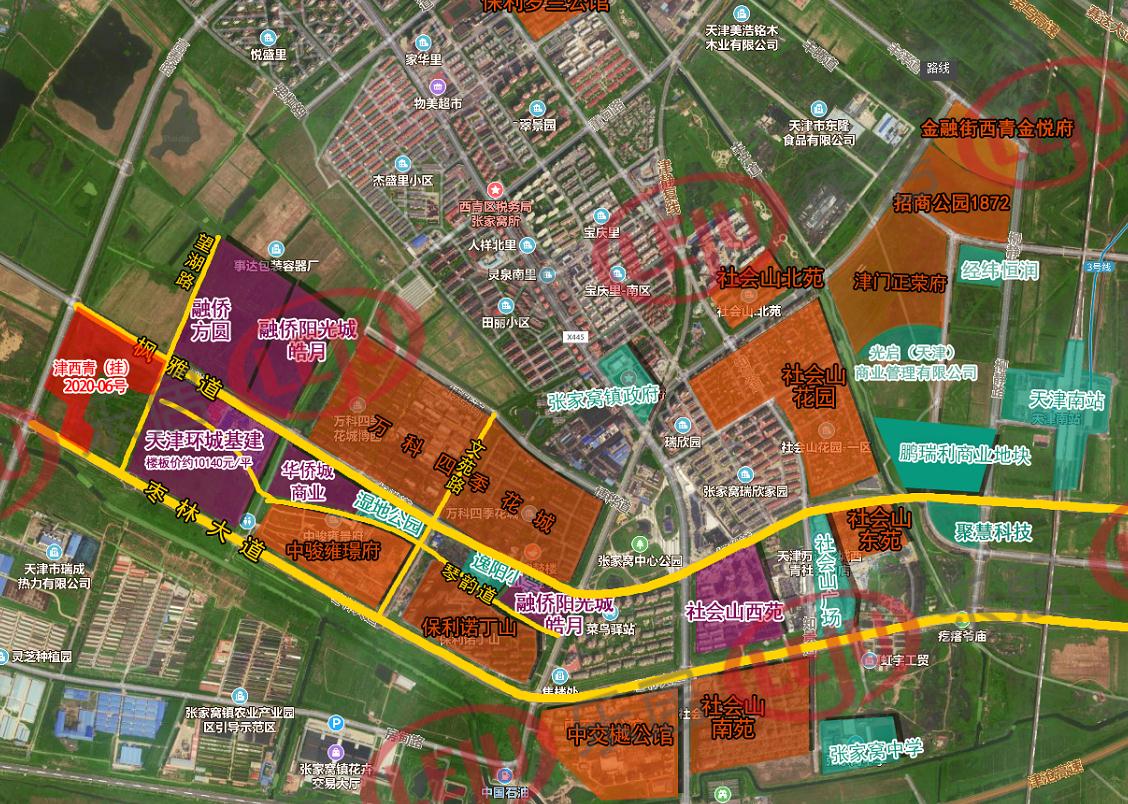 上述今日成交的地块编号为津西青(挂)2020-06号宗地,该地块位于西青区张家窝镇枫雅道以南,东至望湖路,南至琴韵道,西至高泰路。地块为体育用地性质,出让土地面积51274.2㎡,容积率≤1.1,挂牌起始总价1.47亿元。