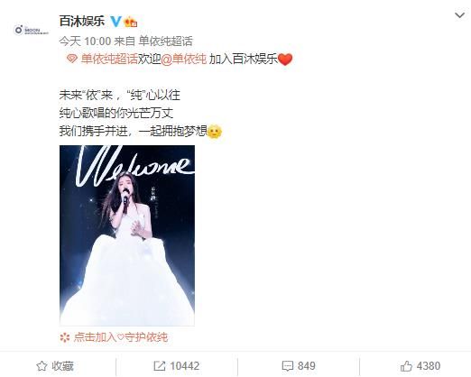 在夺得冠军三天后,单依纯跟“百沐娱乐”签约了!