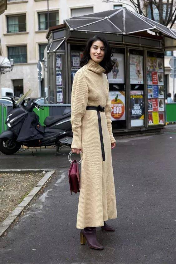 而到了深秋,就推荐选择修身款的针织长裙,针织自带的弹性能够完美展现女性身材曲线,既不会紧绷不适,又能起到保暖作用,可谓是一举两得。