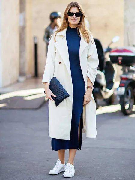 天气冷的时候搭配大衣或风衣,就能很好的抵挡寒意,时髦又保暖。