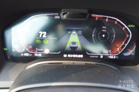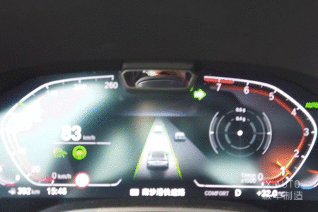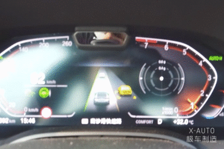 在晚高峰的华南快速上,我们体验到了变道辅助功能比高速上更加“老司机”的一面——当相邻车道有车从后面快速向前行进时,显示屏上的车道线会保持黄色,意味着当前环境条件不满足功能启用,无法进行自动变道。当相邻车道的车辆完成对我们车辆的超越,两车纵向距离不到两个车身时,变道辅助功能会即时启动,车辆不仅会在大约两秒左右的时间异常迅速地完成变道,还会根据设定的车速或者与前车之间的距离选择是否加速跟上前车,整个过程行云流水的程度可以达到让后座乘客无法分辨到底是人工操作还是系统自动完成。而晚高峰时段华南快速上行驶车辆的密度要远远高于高速公路,宝马的变道辅助功能的果断、流畅和敏捷在这种情况下可以更好地保障车辆的行驶安全,也能给予驾乘者更多接近人工驾驶的体验,在行业之中确实处于非常领先的水平。