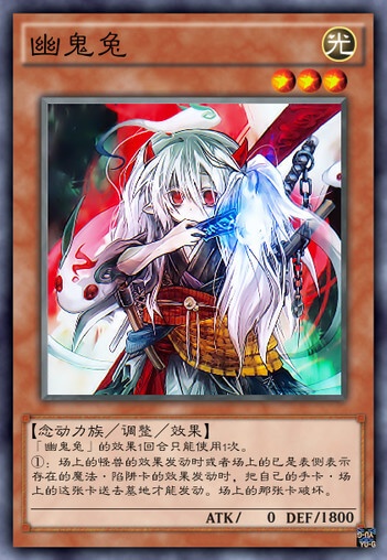 幽鬼兔是调整怪兽卡。强力泛用手坑之一,可以阻止机壳工具丑恶等留场发动的魔法·陷阱卡的效果。同时也可以被紧急瞬间移动检索,相比只能在对方回合主要阶段针对怪兽的效果遮蒙者,这张卡更容易上手和触发。