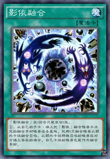 影依融合在1回合只能发动1张。 从自己的手卡·场上把影依融合怪兽卡决定的融合素材怪兽送去墓地,把那1只融合怪兽从额外卡组融合召唤。从额外卡组特殊召唤的怪兽在对方场上存在的场合,自己卡组的怪兽也能作为融合素材。